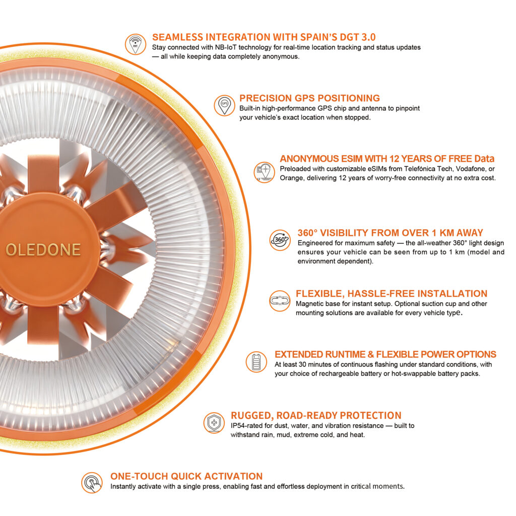 Starting January 1, 2026, Spain’s DGT will make V16 connected beacons mandatory, officially replacing the traditional warning triangle. This regulation creates a multi-million-unit market demand for certified emergency lights — a major opportunity for brands, distributors, and automotive companies.